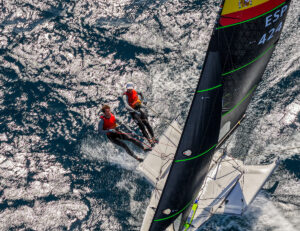 El liderato provisional recae también en manos del equipo preolímpico español de vela. Jordi Xammar y Marta Cardona, vigentes campeones del mundo, firmaron hoy un cuarto y un tercero y extendieron su ventaja respecto a los segundos clasificados, plaza a la que se aúparon los británicos Martin Wrigley y Bettine Harris, actuales medallistas de oro continentales. El tándem catalano-balear cuenta con diez puntos menos que sus máximos rivales. Completan el podio al cierre de la cuarta jornada los franceses Matisse Pacaud y Lucie de Gennes, en tanto que Silvia Mas y Alejandro de Maqua marchan décimosegundos, a cuatro puntos del top ten. Los catalanes entraron quintos en la primera manga, pero luego sumaron una descalificación por salida prematura.