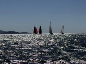 La cuarta prueba puntuable para el Circuito de la Liga de Invierno Cíes-Rande resultó todo un espectáculo visual, de las pocas veces que en una regata se puede ver una salida en popa, con todos los veleros desplegando su paño más grande que es, para unos el spinnaker (simétrica) y para otros el jennaker (asimétrica).