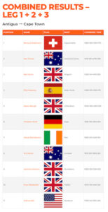 Jakub Ziemkiewicz (#185 Bibi / IE): Derribado por una ráfaga repentina y un viento en contra de 35 km/h a la entrada del puerto, se refugió en un puerto deportivo privado para pasar la noche con Adam y Pilar. A la mañana siguiente, se abrió paso a duras penas por el rompeolas de la costa de sotavento entrando en el puerto con la vela mayor justa para salvar al “BIBI”. Llegó a Ciudad del Cabo todavía temblando, pero con una gorra de aviador de Snoopy.