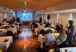 En esta ocasión, durante el encuentro en Punta del Este el comodoro del Monte Real tuvo la oportunidad de intercambiar impresiones y fortalecer vínculos con representantes de otros clubes internacionales, así como de realizar varios intercambios de grímpolas. Entre ellos, con el comodoro del Yacht Club Punta del Este, entidad anfitriona del foro y con la que el Monte Real mantiene relación interclubes; con el comodoro del Royal Varuna Yacht Club de Tailandia, armador también del TP52 “Vayu”, que ha estado en Baiona en varias ocasiones; y con el comodoro del Club de Cartagena de Indias, actualmente aspirante a formar parte del ICOYC.