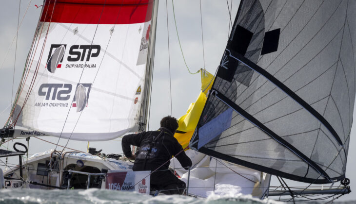 Hay que lamentar dos desarbolamientos: el de Thomas Hamparian (975 – Aelig – Bee Engineering), esta mañana al sur de Glénans, y el de Thomas Biasse (880 – Une Spondy en Mini), durante la noche al norte de la isla de Yeu. Los dos patrones se encuentran bien. Thomas Biasse se dirige hacia Les Sables d’Olonne con un aparejo de fortuna. Un barco de asistencia ha salido a su encuentro para remolcarlo hasta el puerto de Vendée.