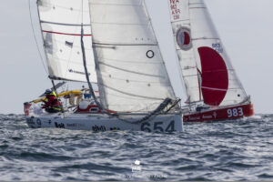 A la cabeza de la flota, Benoît Marie (Nicomatic – Petit Bateau) confirma su condición de favorito al cruzar en primer lugar la marca virtual frente a las costas de Glénans. En Les Sables d’Olonne, Gabriel Bouan continúa sin descanso con la reparación de su proa, dañada ayer, con la esperanza de volver a hacerse a la mar esta misma noche.