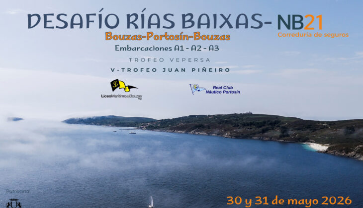 El hermanamiento entre dos grandes entidades gallegas, como son el Liceo Marítimo de Bouzas, vicedecano de la náutica gallega, y el Real Club Náutico Portosín, ha generado su primer gran evento organizado de manera conjunta. Nace el Desafío Rías Baixas NB21, una regata con trazado costero, de ida y vuelta entre la Ría de Vigo y la Ría de Muros y Noia, en dos jornadas continuas, que se celebrará los días 30 y 31 de mayo.