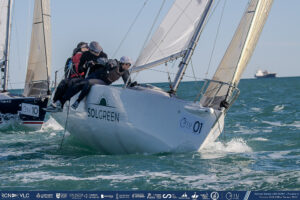 El tercer puesto se lo queda el líder provisional: “Solgreen” (RCN Valencia), armado por Manuel de Tomás, confirmando también su buen momento en la flota J80 y su regularidad. En la cita de este fin de semana ha cerrado su participación con 21 puntos, con parciales de 3-3-4-2-3-6.
