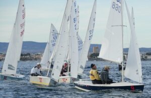 Con puntualidad se podía lanzar la primera prueba del día, sobre las 12.10 horas, con un viento de 5-6 nudos del 190º. Al protagonismo del viento y cumpliéndose el pronóstico meteorológico, se han unido en el Mar Menor el tándem local, formado por Francisco y Marina Sánchez, ambos han sabido adaptarse muy bien en campo de regatas difícil para todos.