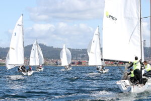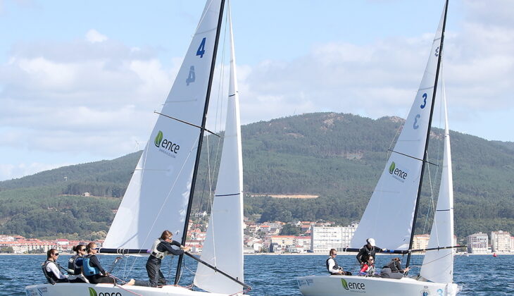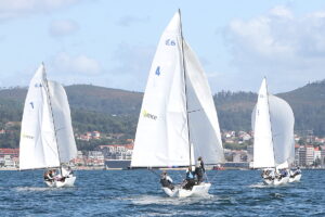 La lámina de agua sería la misma. Barlovento hacia a Illa y sotavento entre Malveiras y Cortegada, con un 260-270 (entre suroeste y oeste) y más intensidad de viento que en la jornada inaugural, entre 9 y 12 nudos.