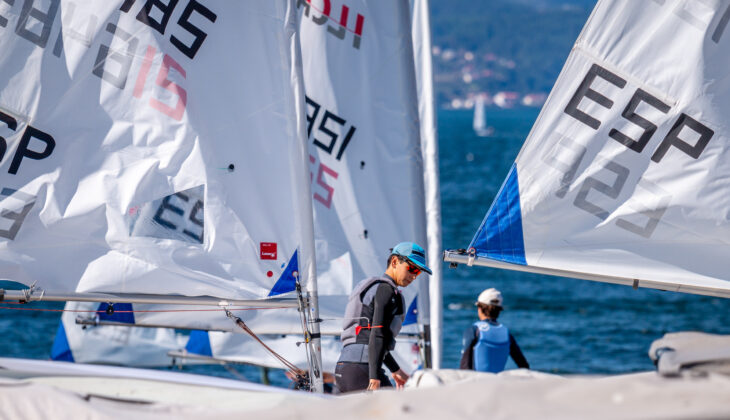Intensa actividad en el Centro Gallego de Vela, en Vilagarcía de Arousa, con el inicio de la Copa de España de ILCA 6 (anterior Láser Radial), que hasta el próximo domingo reúne en aguas de la Ría de Arousa a más de 150 embarcaciones llegadas desde todos los rincones del territorio nacional, tanto insular como peninsular, a los que hay que añadir a los inscritos que lo hacen en el formato Open procedentes de Estonia, Guatemala, Panamá, Suiza y el vecino país de Portugal.