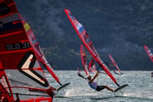 Con 22 regatistas en liza y dos pruebas finalizadas, el doblete de victorias de la transalpina Medea Falcioni la convierte en líder de la categoría femenina del IQFOIL.