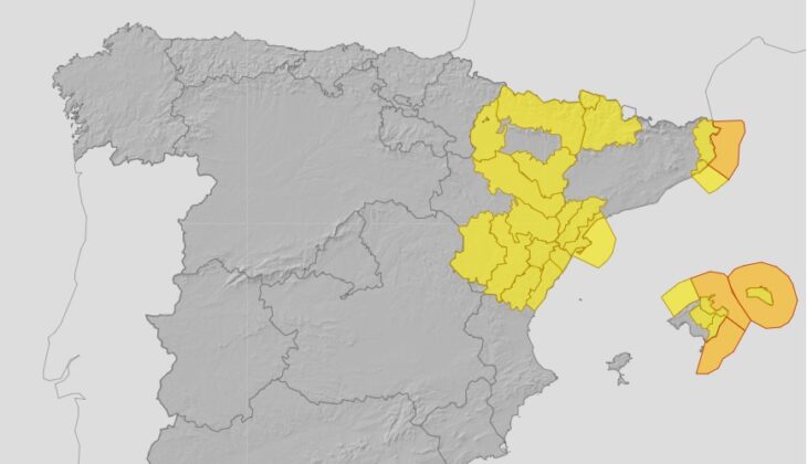 CIB.: MALLORCA, por riesgo de Vientos (hasta 15h.) y Femnómenos Costeros Adversos (a partir 18h.). MENORCA, por riesgo de Vientos (hasta 20h.) y Fenómenos Costeros Adversos (a partir 20h.).
