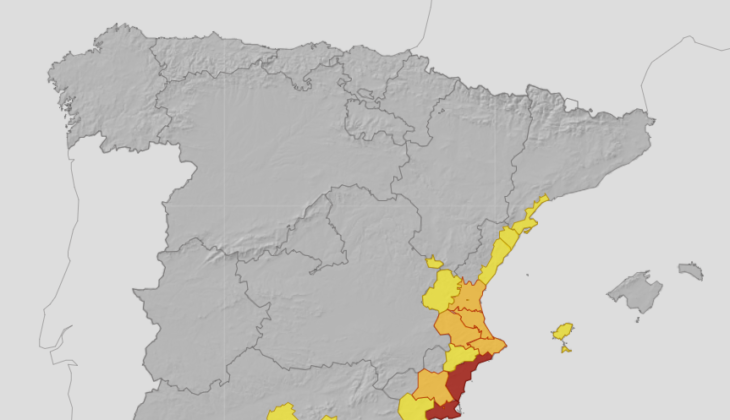 CVLC.: ALICANTE (hasta 10h.) y VALENCIA, por riesgo de Fuertes Lluvias.