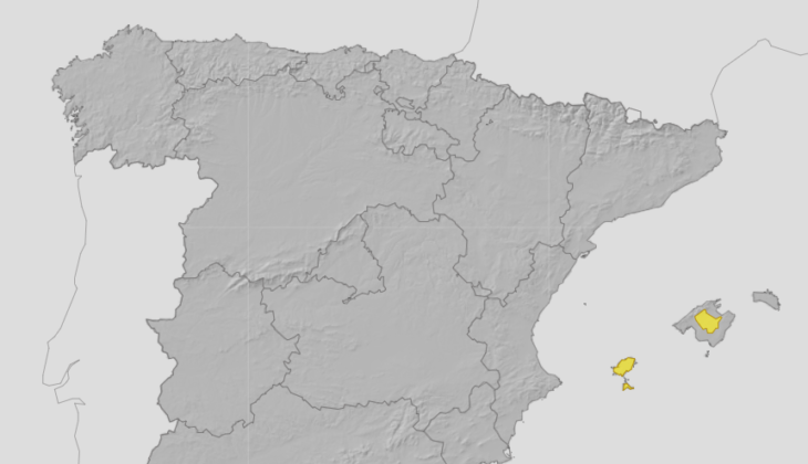 CIB.: IBIZA, FORMENTERA y MALLORCA, por riesgo de Lluvias (entre 12 y 18h.).