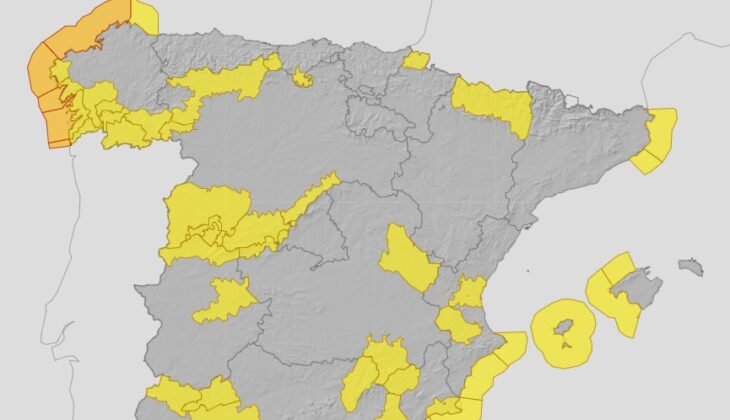 La Agencia Estatal de Meteorología (AEMET), ha establecido para la jornada de hoy los siguientes niveles de alerta: