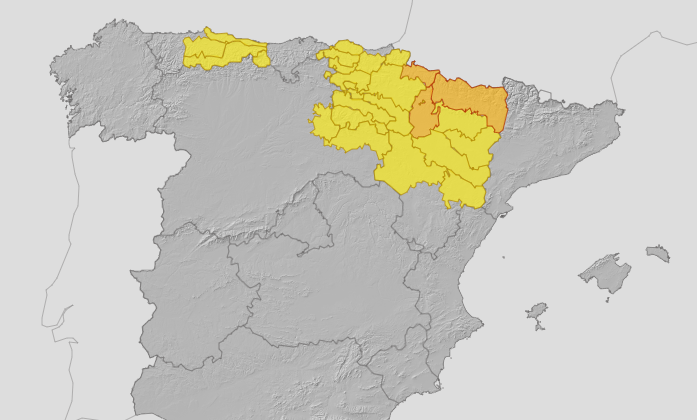 La Agencia Estatal de Meteorología (AEMET), ha establecido para la jornada de hoy los siguientes niveles de alerta: