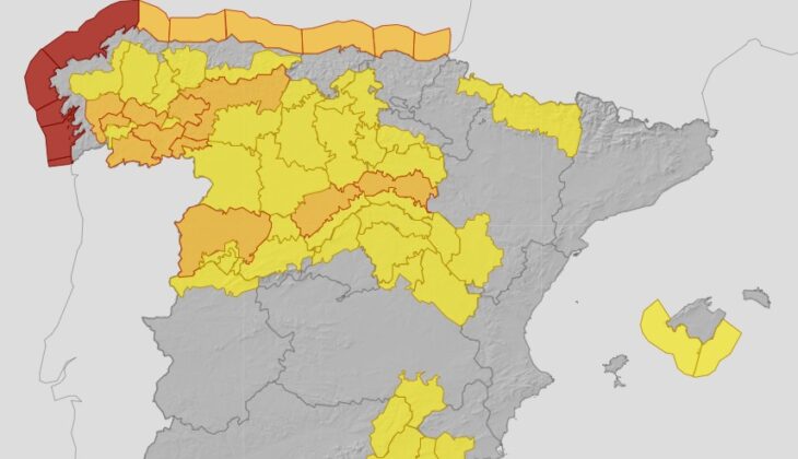 La Agencia Estatal de Meteorología (AEMET), ha establecido para la jornada de hoy los siguientes niveles de alerta: