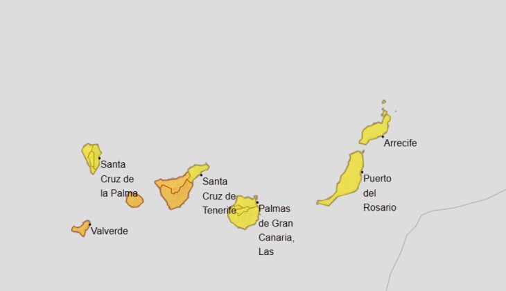 CCAN.: GRAN CANARIA, FUERTEVENTURA y LANZAROTE, por riesgo de Lluvias. LA PALMA, por riesgo de Tormentas (a partir 15h.) y Lluvias. LA GOMERA y TENERIFE, por riesgo de Tormentas (a partir 15h). EL HIERRO, por riesgo de Lluvias (hasta 15h.) y Tormentas (a partir 15h.).