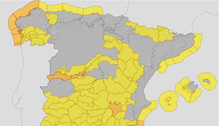 La Agencia Estatal de Meteorología (AEMET), ha establecido para la jornada de hoy los siguientes niveles de alerta: