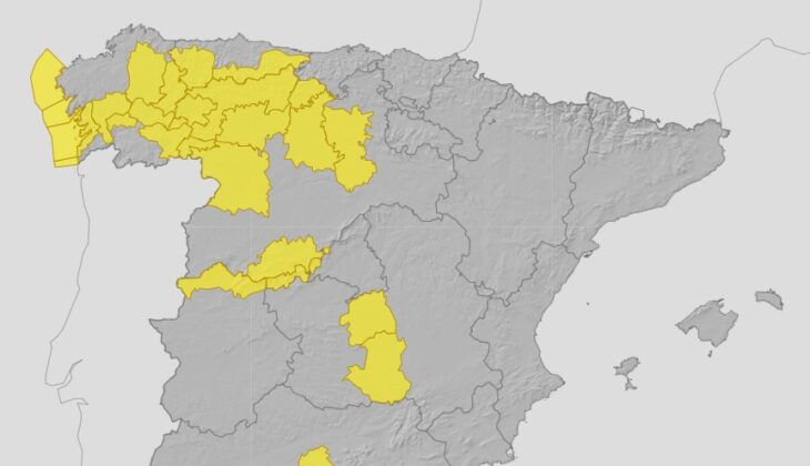 CCyL.: ÁVILA, por riesgo de Lluvias (hasta 12h.). BURGOS, LEÓN, PALENCIA y ZAMORA, por riesgo de Tormentas (entre 12 y 22h.).