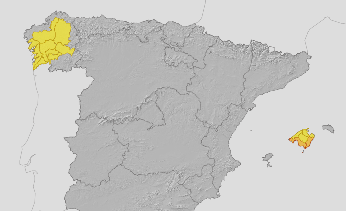 CGAL.: A CORUÑA, LUGO y OURENSE, por riesgo de Lluvias (entre 12 y 21h.). PONTEVEDRA, por riesgo de Lluvias (entre 8 y 21h.).